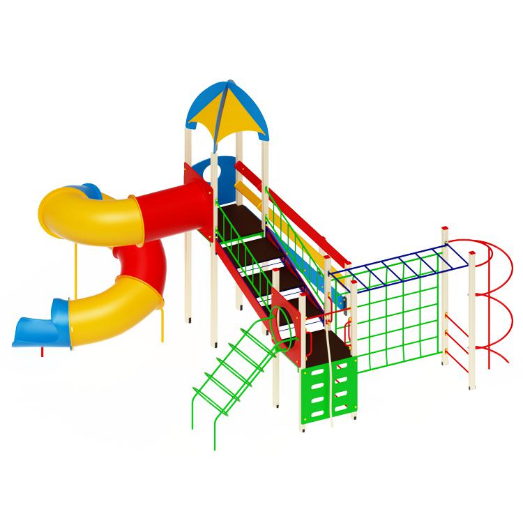 Игровая площадка «Космос» состоит из одной башки с четырехскатной крышей и арками, лестницей с перилами, скат-горкой, щита-скалолаза с канатом, перекладины и двух стальных оград. Для изготовления конструкции «Космос» используют: нескользкую фанеру ламинированную 18 мм; влагостойкую фанеру 18, 27, 30 мм; сталь нержавеющая 1,5 мм; профиль 25х40 мм; трубу с круглым сечением 32 мм; канат полиуретановый 27 мм; брусья клееные 90х90 мм. Лакокрасочные материалы для покрытия конструкции: порошковая, акриловая и двухкомпонентная полиуретановая краски.