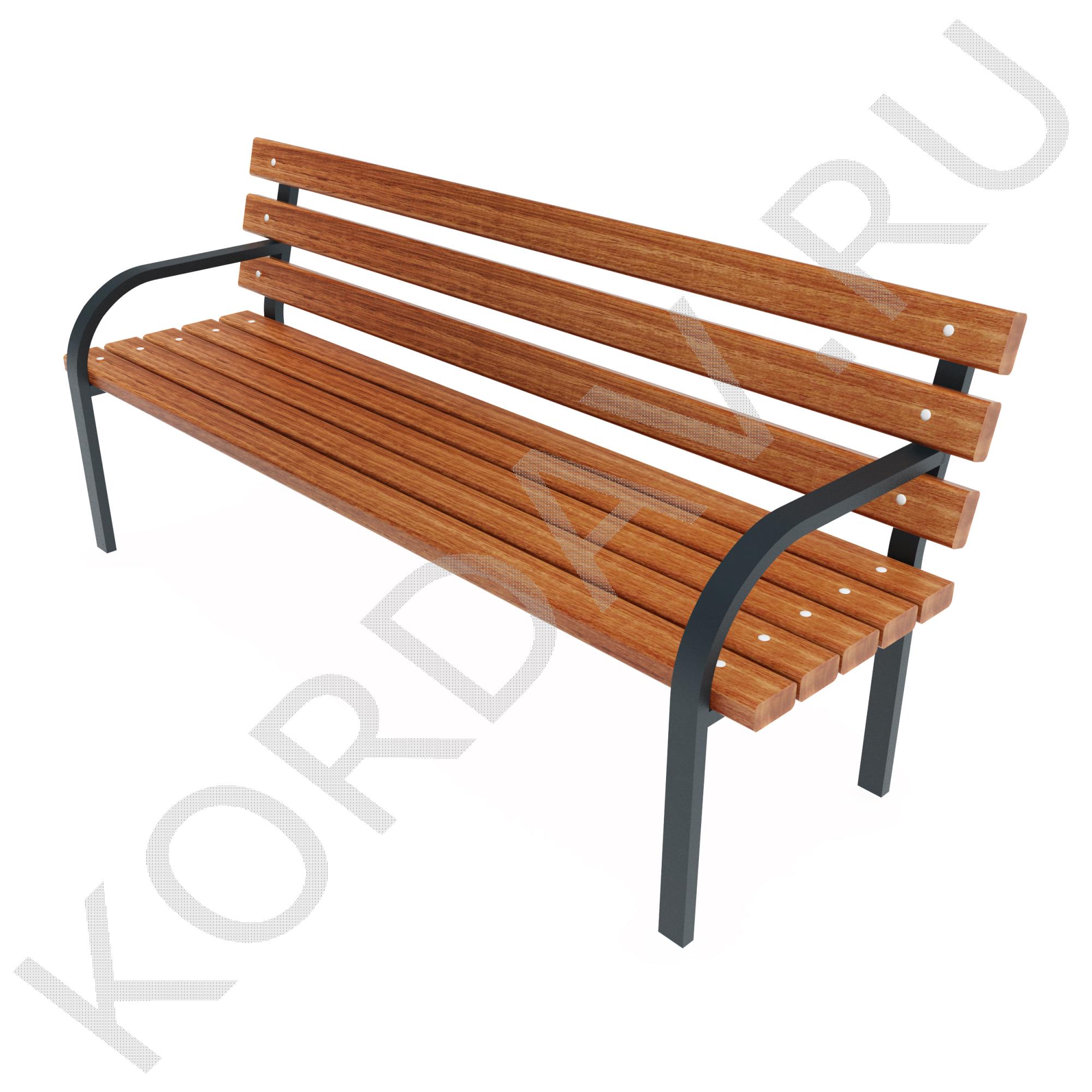 Таким образом, данная парковая скамья отличается прочной металлической конструкцией с плавными изгибами и качественной обработкой поверхностей, а также удобным деревянным сидением и спинкой, защищенными от атмосферных воздействий специальными красками.